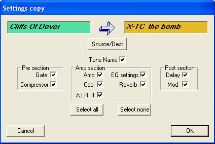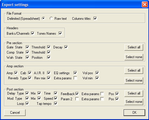 The behaviour is identical at the Amp settings one. You can export the settings of a single tone file, or select the tones or amp defaults within a bundle file.
