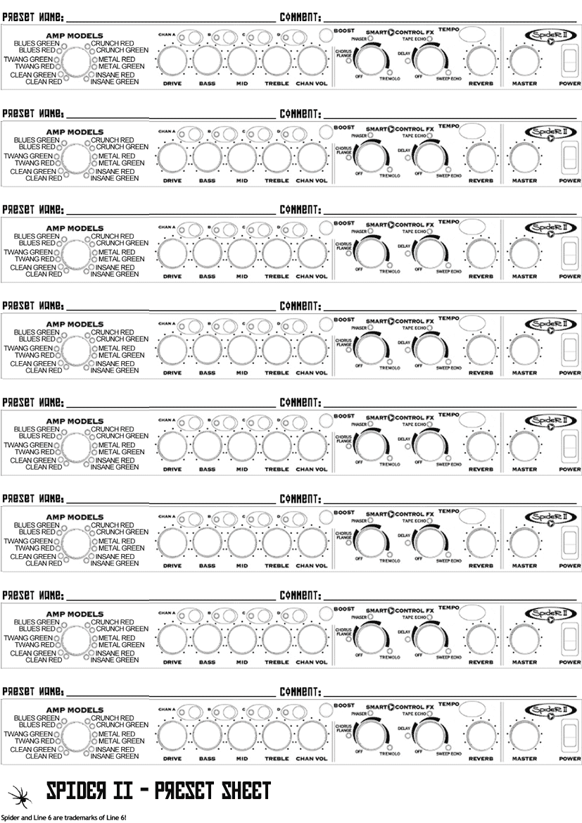 *Line 6®, Line 6 Inc., AX2, AxSys, BackTrack, BackTrack+Mic, Bass Floor POD®, Bass POD®, Bass POD® xt, Bass POD® xt Pro, Bass POD® xt Live, Constrictor™, Crunchtone™, Customtone, Duoverb, DL4™, DM4™, Echo Park™, Eight Ball, Filter Pro™, Flextone™, Floorboard, Floor POD®, Floor POD® Plus, FBV Express™, GearBox™, GearBox™ Plug-In, Guitarport™, GuitarPort® RiffTracker™, GuitarPort® xt, FM4™, HD147®, Jamware, JM4 Looper, LowDown, Liqua Flange™, M13, MM4™, MOD Pro, POD®, Pocket POD®, Pocket POD® Express, POD® FARM, POD® Studio, POD® xt, POD®xt Pro, POD® xt Live, POD® X3, POD® X3 Pro, POD® X3 Live, Rifftracker™, Roto Machine™, Space Chorus™, Spider™, Spider-Jam™, Spider-Valve™, ToneCore™, TonePort™, TubeTone, Ubermetal™, GX, UX1, UX2, UX8, Verbzilla™, Vetta™, Variax®, Variax® Acoustic, Variax® Workbench™ and Line 6 logos are trademarks of Line 6, Inc. RiffWorks, InstantDrummer™, Riffcaster, Rifflink and Sonoma Wire Works™ are trademarks of Sonoma Wire Works™. Atomic, Atomic Amps, LLC, Atomic Reactor 112, Atomic Reactor 112-50 and Atomic Reactor 212 are trademarks of Atomic Amps. Bose® and Bose® Personalized Amplification System™ are registered trademarks of Bose. T1 Tonematch, L1, All rights reserved. Vinny appears exclusively
