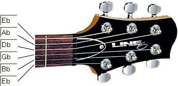 Underneath you'll find a guide in pictures on how different tunings are achieved Onderstaand vindt je afbeeldingen die je verschillende alternatieve stemmingen laten zien