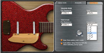 I want more tweaking No, not more tweaking... well alright then. Line 6 added another unique feature. You can customize the value and taper of the Tone and Volume controls in real time. Not only tone and volume, you can also tweak, tweak, tweak the capacitators!! Click on the picture for higher quality picture